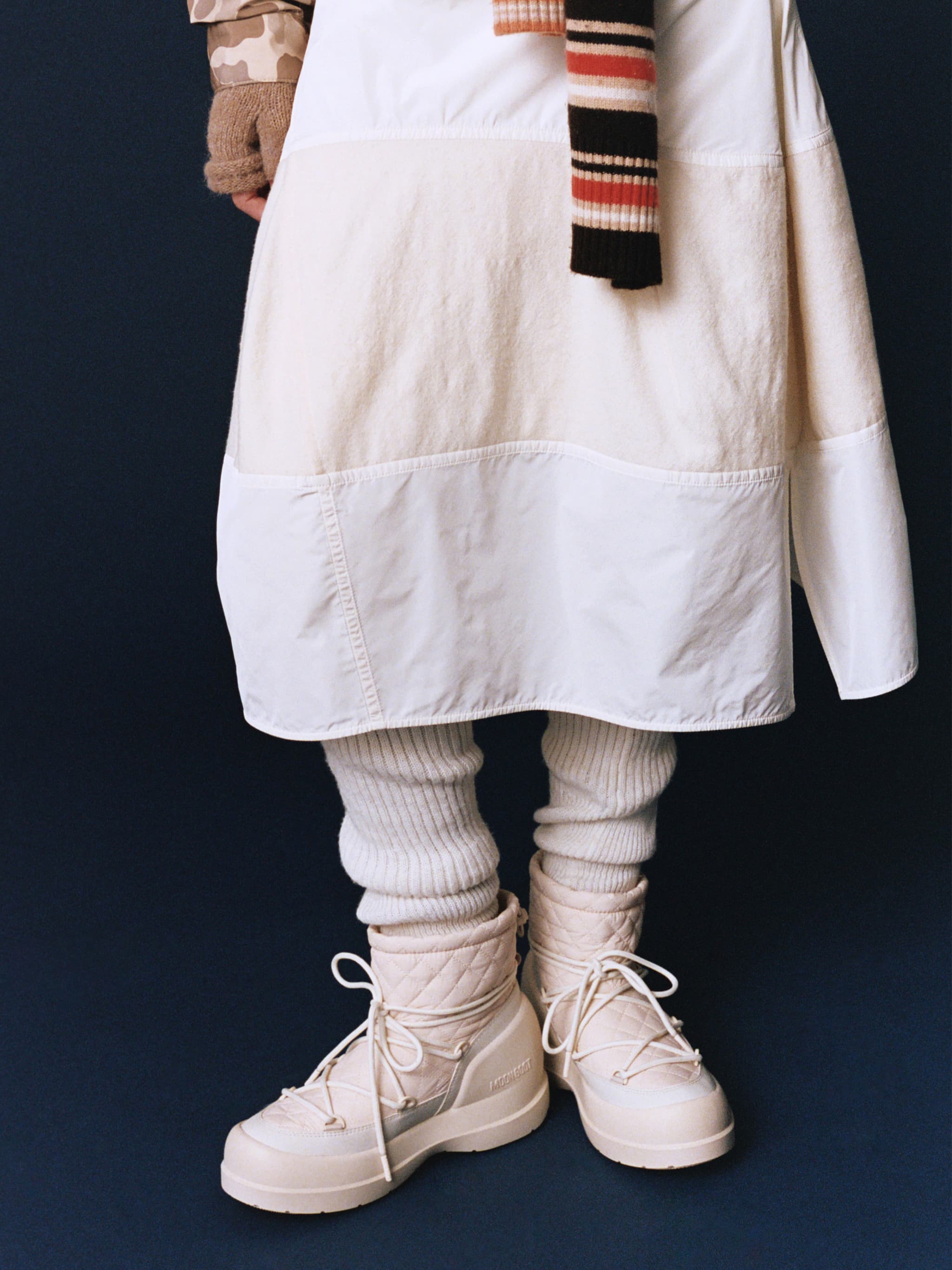 Your style boost for Earth's shifting skies – these Mezzaluna boots fuse cosmic inspiration with real-world readiness, courtesy of the durable waterproof finish. The quilted pattern and chunky, contoured soles deliver a fashion-forward twist while keeping you grounded, while the criss-cross laces and practical drawstrings make it easy to get the perfect fit.